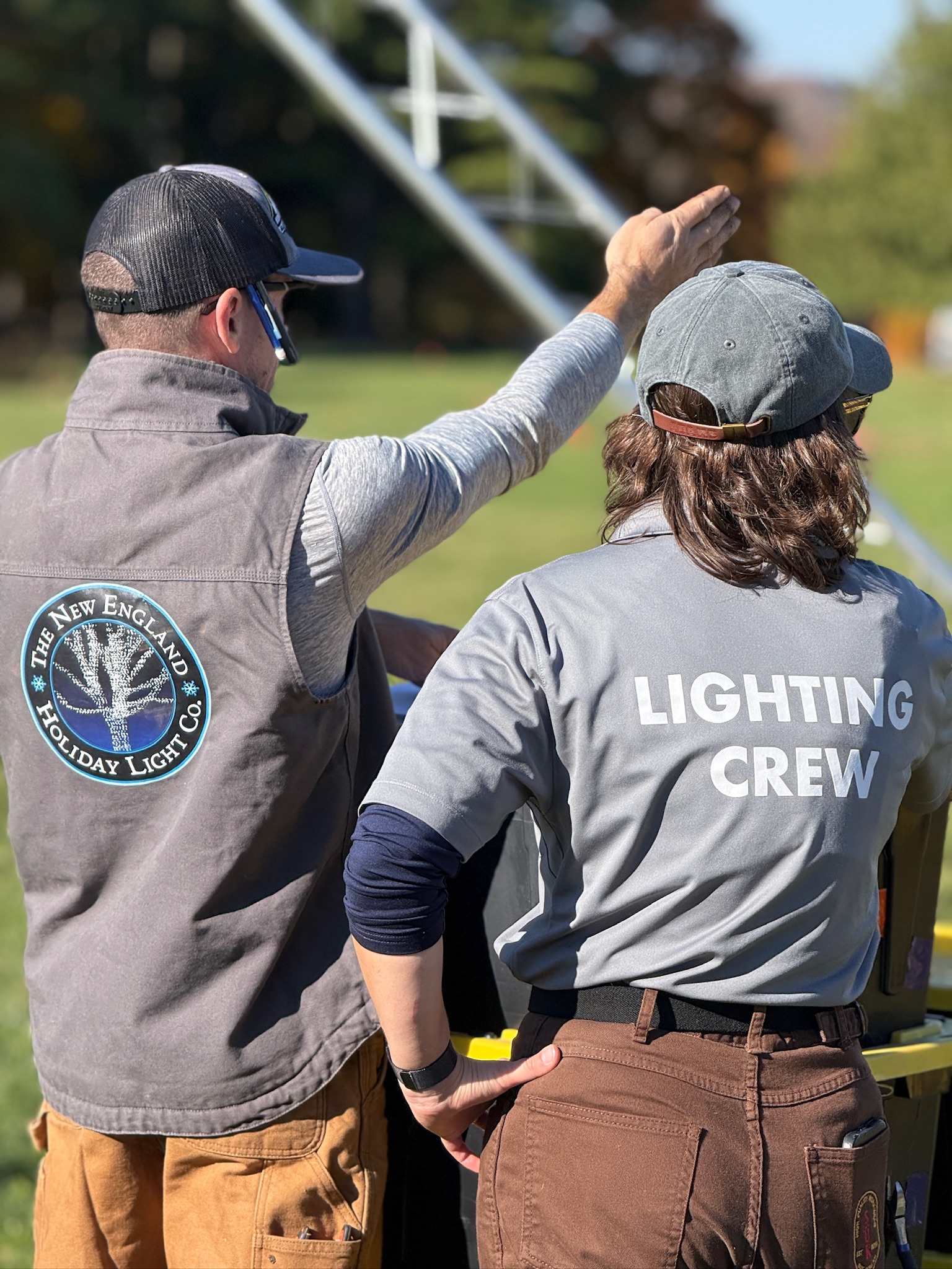 We start by getting to know your space and the style you’re dreaming of. Maybe you want a timeless warm-white glow, a bold splash of color, or something whimsical and fun. We walk the property (or review photos), point out natural focal points, and talk through what will make your display stand out.